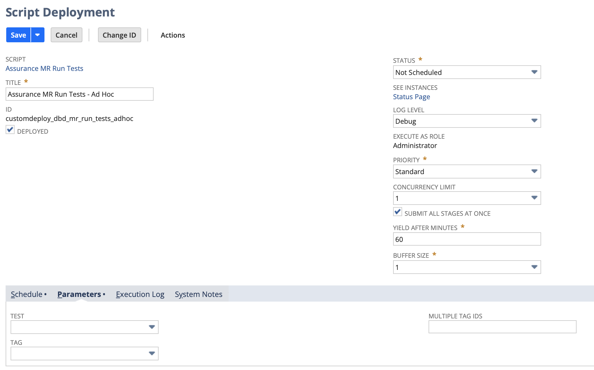 - Call the map/reduce directly (ad-hoc or scheduled). Use script parameters to define which test(s) to return.